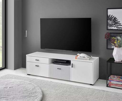Ursprünglicher Preis €0,00 - Ursprünglicher Preis €0,00Ursprünglicher Preis €0,00€419,42€419,42 - €419,42Aktueller Preis €419,42| /Auf Lager - Lieferzeit 7-10 ArbeitstageMODERNES DESIGN: Lowboard in Weiß Matt mit Evoke Eiche-Details, grifflosen Schubkästen und optionaler Beleuchtung für elegantes Wohnzimmer-Ambiente...