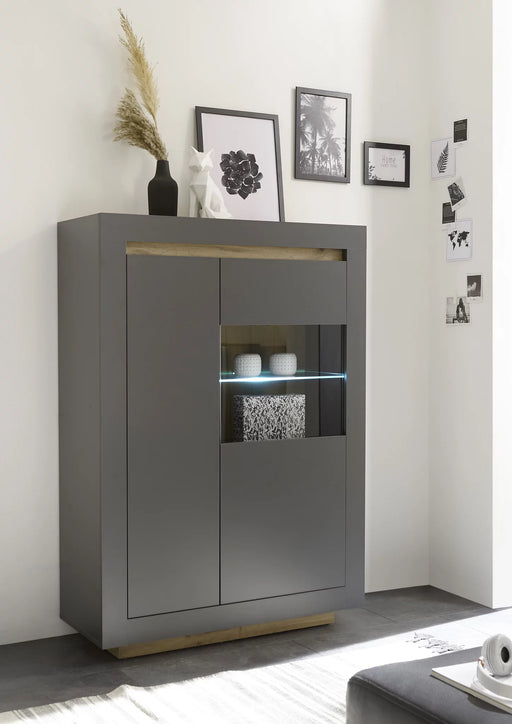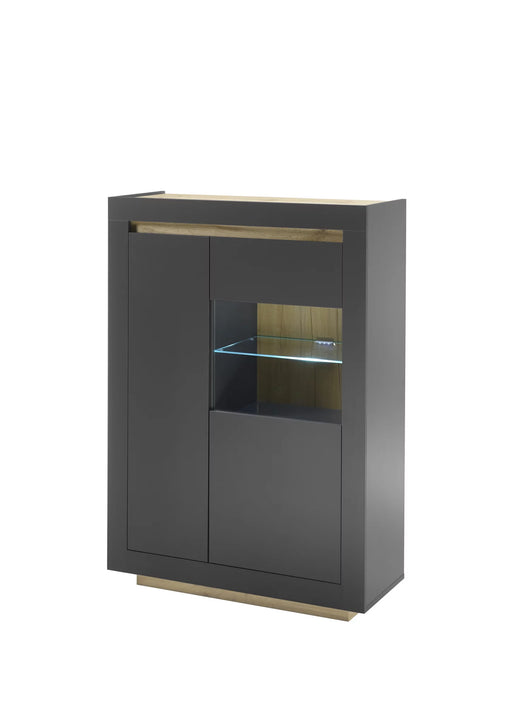 Ursprünglicher Preis €0,00 - Ursprünglicher Preis €367,73Ursprünglicher Preis €0,00€357,94 - €497,87€357,94 - €497,87Aktueller Preis €357,94| /Auf Lager - Lieferzeit 7-10 ArbeitstageMODERNES DESIGN - Stilvolle Wohnzimmer Vitrine im grifflosen Design, kombiniert Anthrazit mit warmer Wotan Eiche – passt ideal zu modernen Wohnkonz...