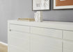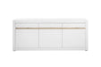 ELEGANTES DESIGN: Sideboard in Weiß Matt mit Evoke Eiche-Details, grifflosen Fronten und Wechselblende für modernes Wohnzimmer-Ambiente. GROßZÜGIGER STAURAUM: 217 x 90 x 42 cm mit 3 Drehtüren, 3 Schubkästen und 6 Fächern für optimale Ordnung und Aufbewahrung. FLEXIBLE AUFTEILUNG: Verstellbare Einlegeböden hinter Drehtüren und Schubkästen bieten individuelle Nutzungsmöglichkeiten und Übersicht. NACHHALTIG UND LANGLEBIG: Holzwerkstoff mit pflegeleichter Melaminbeschichtung, FSC-zertifiziert für nachhaltige und stabile Nutzung. EINFACHE MONTAGE: Zerlegt geliefert mit Montageanleitung und Befestigungsmaterial für schnellen, sicheren Aufbau im Wohnzimmer.