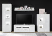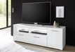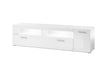 MODERNES DESIGN: Breites Lowboard in Weiß Hochglanz mit Stangengriffen, elegant und minimalistisch, ideal für stilvolle Wohnzimmer und Entertainmentbereiche. GROßZÜGIGER STAURAUM: 180 x 48 x 40 cm mit 1 Drehtür, 1 Klappe und 5 Fächern, davon 2 offen, für Multimedia-Geräte, Dekoration oder Wohnaccessoires. FLEXIBLE AUFTEILUNG: Offene und geschlossene Fächer bieten praktische Nutzung, Ordnung und attraktive Präsentation von Geräten und Dekoration. HOCHWERTIGE MATERIALIEN: Holzwerkstoff mit pflegeleichter Melaminbeschichtung sorgt für langlebige Stabilität, robuste Qualität und einfache Reinigung. OPTIONALE BELEUCHTUNG: Beleuchtung kann hinzugefügt werden, um offene Fächer und Dekorationen stimmungsvoll hervorzuheben und das Wohnzimmer optisch aufzuwerten.