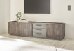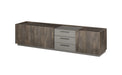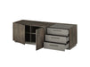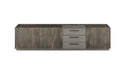 Das LIVOJO M18 Lowboard vereint modernen Industriestil mit durchdachter Funktionalität: Aus Holzwerkstoff gefertigt und mit Melamin in Thermo Oak veredelt, setzen Details in Anthrazit stilvolle Akzente. Viel Stauraum bieten die Schubkästen mit Metallgriffen sowie die grifflosen Drehtüren, und das Lowboard ist in verschiedenen Größen und Ausführungen erhältlich, passend für jede Einrichtung.