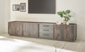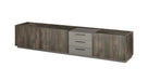 MODERNER INDUSTRIESTYLE: LIVOJO M18 Lowboard in Thermo Oak & Anthrazit mit grifflosen Drehtüren und Metall-Stangengriffen setzt stilvolle Akzente in Ihrem Wohnzimmer. BREITE MAßE: Mit 240 x 50 x 45 cm bietet das breite TV-Möbel viel Stauraum für Fernseher, Multimedia-Geräte und Dekoration in großen Wohnräumen. FLEXIBLE AUFTEILUNG: Drei Drehtüren, drei Schubkästen, sechs Fächer und drei verstellbare Einlegeböden bieten individuelle Aufbewahrungsmöglichkeiten und Ordnung. ROBUSTES MATERIAL: Holzwerkstoff mit pflegeleichter Melaminbeschichtung sorgt für Langlebigkeit, Stabilität und einfache Reinigung im täglichen Gebrauch. EINFACHE MONTAGE: Lieferung zerlegt, inklusive verständlicher Aufbauanleitung und sicherer Verpackung – das Lowboard ist schnell aufgebaut und sofort einsatzbereit.