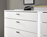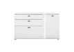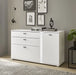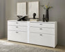 DESIGN: Modernes, minimalistisches Sideboard in Weiß Matt mit aufrechten Griffleisten und integrierter LED-Beleuchtung für stilvolles Wohnzimmerambiente. MAßE & STAURAUM: Kommode 150 x 86 x 42 cm mit 1 Drehtür, 2 Schubkästen, 1 Klappe und 3 Fächern für vielseitige Nutzung. MATERIAL: Hochwertiger Holzwerkstoff mit Melaminoberfläche, stabile Metallstangengriffe und langlebige Verarbeitung für den Alltag. FUNKTIONALITÄT: Soft-Close-Technik bei Tür, Schubkästen und Klappe, verstellbarer Boden, ideal für geordneten Stauraum und dekorative Präsentation. LIEFERUNG & MONTAGE: Zerlegte Lieferung mit klarer Aufbauanleitung, alle Teile enthalten, einfache Montage und sofortige Nutzung möglich.