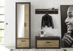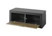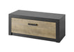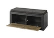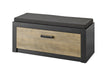 Die LIVOJO I11 Garderobenbank vereint stilvolle Optik mit funktionalem Komfort: Gefertigt aus Holzwerkstoff mit pflegeleichter Melaminoberfläche in Dunkelgrau, bietet sie hinter der Klappe in Kastanie mit Bremsklappenbeschlag praktischen Stauraum. Das passende Sitzkissen ist bereits inklusive und rundet das moderne Design harmonisch ab.
