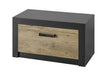 Die LIVOJO I11 Garderobenbank vereint stilvolle Optik mit funktionalem Komfort: Gefertigt aus Holzwerkstoff mit pflegeleichter Melaminoberfläche in Dunkelgrau, bietet sie hinter der Klappe in Kastanie mit Bremsklappenbeschlag praktischen Stauraum. Das passende Sitzkissen ist bereits inklusive und rundet das moderne Design harmonisch ab.