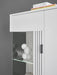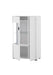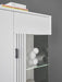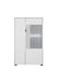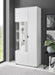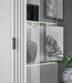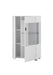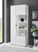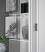 Die LIVOJO M17 Vitrine vereint moderne Eleganz mit funktionalem Design: Aus Holzwerkstoff gefertigt und mit Melamin in Weiß Matt veredelt, überzeugt sie durch Eckverglasung mit Hintergrund in Lamellenoptik. Stangengriffe aus schwarzem Metall setzen stilvolle Kontraste, und die Vitrine ist in verschiedenen Größen und Ausführungen erhältlich, um jedem Raum gerecht zu werden.