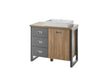 INDUSTRIELLES DESIGN: LIVOJO I12 Badezimmer Waschtisch in Stirling Oak mit kühlen Matera-Akzenten setzt moderne Akzente im Bad und verbindet elegantes Design mit industrieller Optik. PRAKTISCHE MAßE: Kompakter Waschbeckenschrank mit 91 x 85 x 40 cm, ideal für Badutensilien, Handtücher und Kosmetik, kombiniert mit einem Aufsatzwaschbecken von 50 x 9,5 x 35,5 cm. OPTIMALER STAURAUM: Eine Drehtür, drei Schubkästen mit Griffmulden und ein verstellbarer Ablageboden ermöglichen eine übersichtliche und flexible Aufbewahrung im Badezimmer. ROBUST & LANGLEBIG: Hochwertiger Holzwerkstoff mit Melaminbeschichtung sorgt für stabile, pflegeleichte Oberflächen, langlebige Nutzung und elegante Erscheinung im Bad. EINFACHE MONTAGE: Zerlegt geliefert mit klarer Anleitung und stabilen Kufen – der Waschtisch lässt sich unkompliziert aufstellen und ist sofort einsatzbereit.