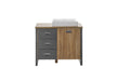 Der LIVOJO I12 BAD Einzelwaschtisch verbindet industriellen Stil mit praktischer Eleganz: Gefertigt aus Holzwerkstoff und mit Melaminbeschichtung veredelt, zeigt er die warme Optik Stirling Oak mit kühlen Matera-Akzenten. Schubkästen und individuell anpassbarer Stauraum hinter Drehtür sorgen für Ordnung, während schlanke Kufen und ein Waschbecken mit glänzender Oberfläche das Gesamtbild stilvoll abrunden.