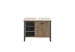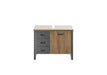 INDUSTRIELLES DESIGN – Die Verbindung von Stirling Oak Dekor und dunklen Kufen in Matera sorgt für ein modernes und markantes Erscheinungsbild in Ihrem Badezimmer. KOMPAKTE MAẞE – Mit 61 x 62 x 40 cm bietet der schmale Unterschrank clevere Stauraumlösungen, ohne viel Platz einzunehmen. FLEXIBLE AUFTEILUNG – Eine Drehtür, drei Einlegeböden (davon einer verstellbar) und fünf Fächer, darunter drei offene, schaffen vielseitige Nutzungsmöglichkeiten. ROBUSTE VERARBEITUNG – Aus Holzwerkstoff mit Melaminbeschichtung gefertigt, überzeugt der Schrank durch Langlebigkeit und pflegeleichte Oberflächen. EINFACHE MONTAGE – Der Badschrank wird zerlegt geliefert und lässt sich mithilfe der beiliegenden Anleitung problemlos aufbauen.