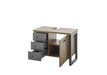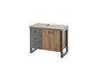 Der LIVOJO I12 BAD Waschbeckenunterschrank bringt industriellen Charakter ins Bad: Gefertigt aus robustem Holzwerkstoff in Stirling Oak und getragen von markanten Kufen in Matera, verbindet er urbanen Look mit praktischer Funktion. In verschiedenen Ausführungen erhältlich, passt er sich stilvoll unterschiedlichen Raumkonzepten an.