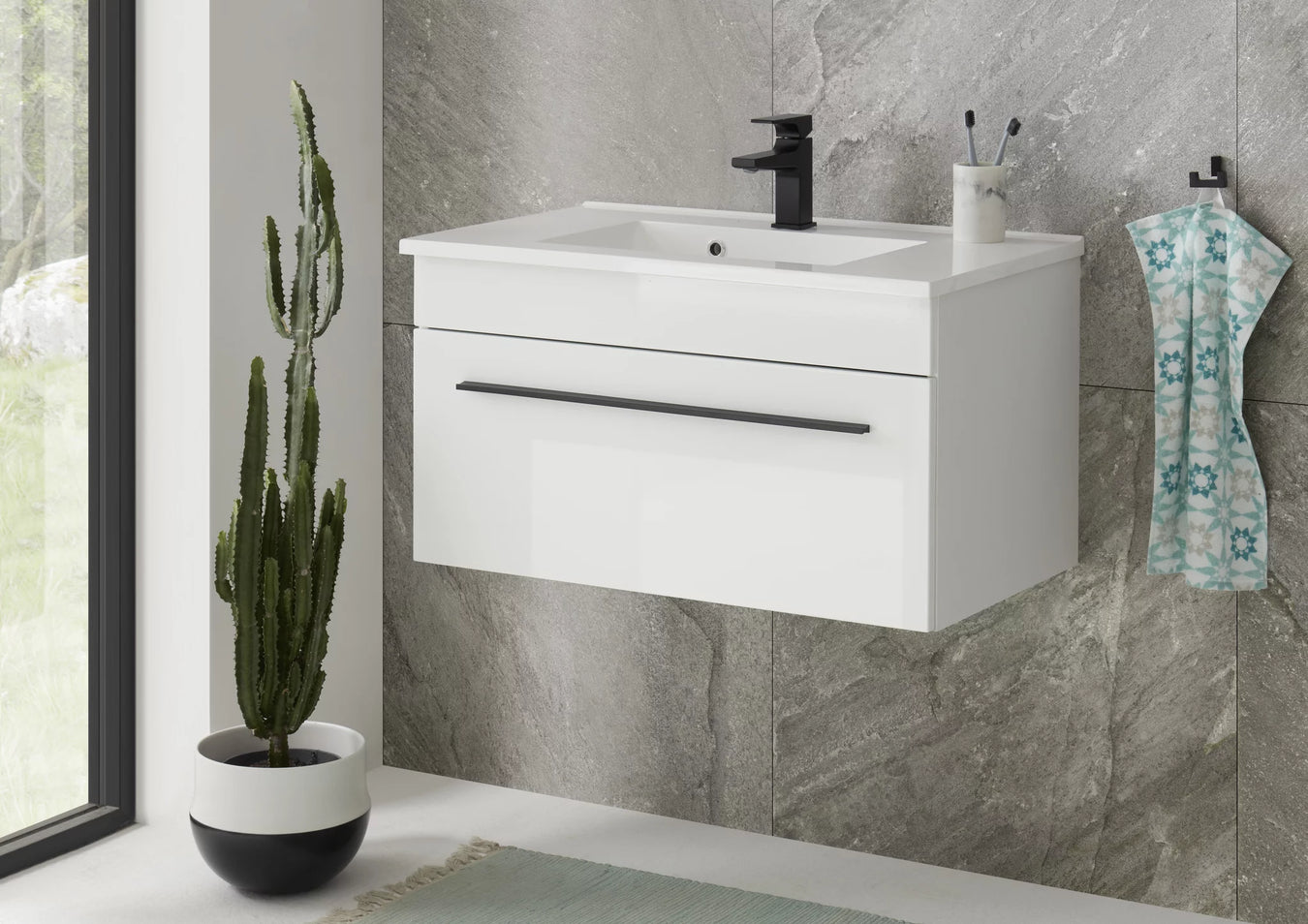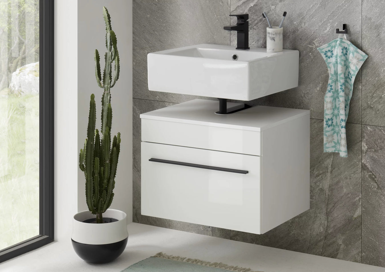 Original price €0,00 - Original price €0,00Original price €0,00€207,48 - €224,67€207,48 - €224,67Current price €207,48| /In stockMODERNER KONTRAST – Weiß Hochglanz und Anthrazit setzen stilvolle Akzente im Badezimmer und sorgen für einen zeitlosen Look mit klarer Formsprache....